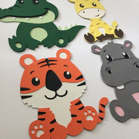 4 ZOO ANIMAL Die Cut Card Making Toppers - HIPPO, CROCODILE, TIGER, GIRAFFE
