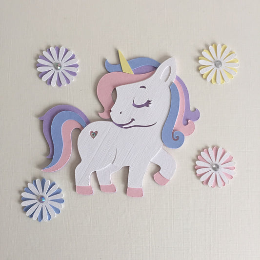 3 Pastel UNICORN & FLOWERS Die Cut Card Making Toppers