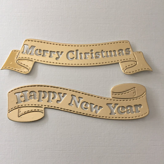 14 Gold MERRY CHRISTMAS, HAPPY NEW YEAR BANNER Card Making Die Cuts
