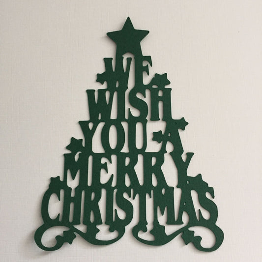 6 MERRY CHRISTMAS TREE Card Making Die Cut Toppers- Red, Green, White