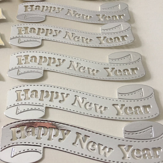 14 Silver MERRY CHRISTMAS, HAPPY NEW YEAR Card Making Die Cuts