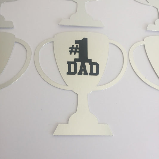 6 Silver #1 DAD TROPHY Die Cut Card Making Toppers - Large