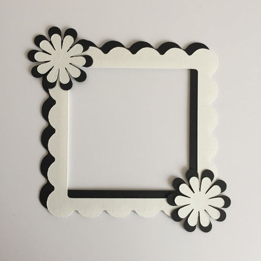 4 Black & White FLORAL FRAME Die Cut Card Making Toppers