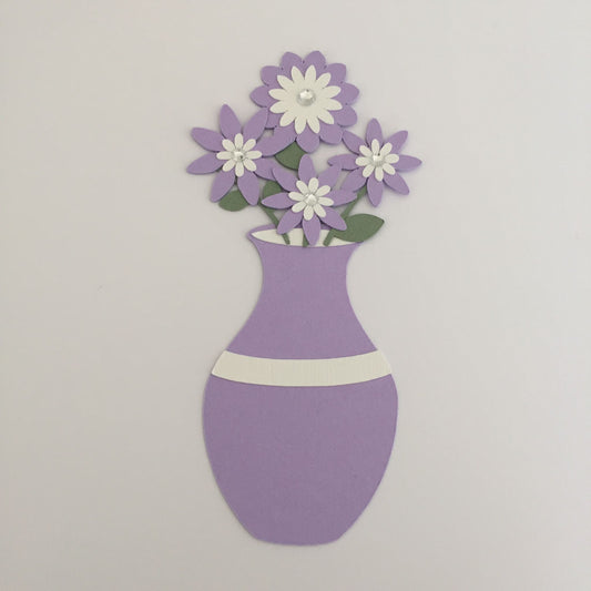 3 Lilac & White VASE WITH FLOWERS Die Cut Card Making Toppers