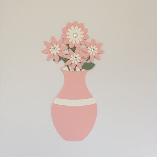 3 Pink & White VASE WITH FLOWERS Die Cut Card Making Toppers