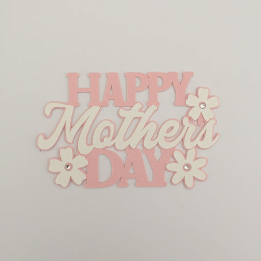 6 Floral Pink & White HAPPY MOTHER'S DAY Sentiment Die Cut Toppers