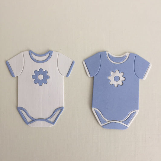 6 Blue & White NEW BABY VEST Die Cut Cardmaking Toppers