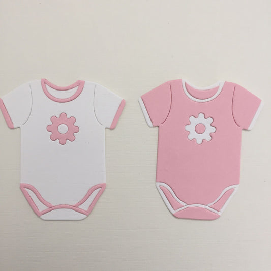 6 Pink & White NEW BABY VEST Die Cut Cardmaking Toppers