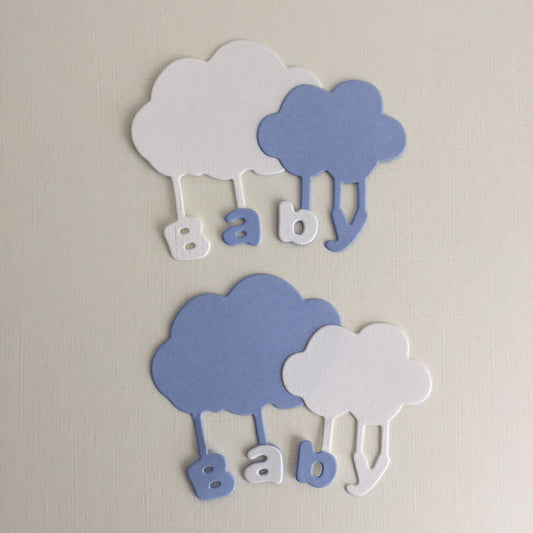 6 Blue & White NEW BABY CLOUD Die Cut Cardmaking Toppers