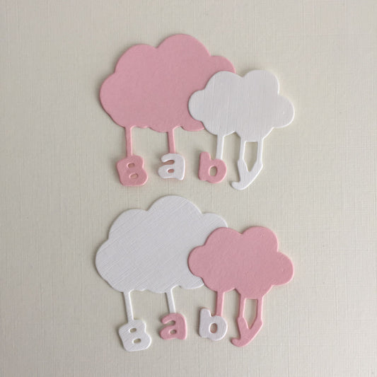 6 Pink & White NEW BABY CLOUD Die Cut Cardmaking Toppers