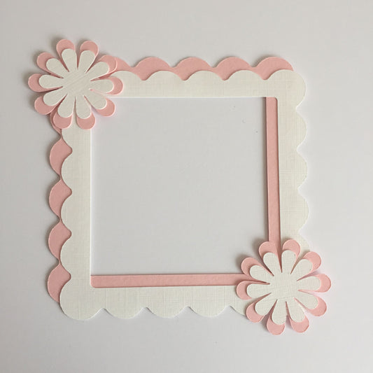 4 Pink & White FLORAL FRAMES Die Cut Card Making Toppers