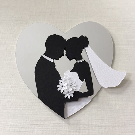 3 BRIDE & GROOM SILVER HEART Wedding Die Cut Card Making Topper