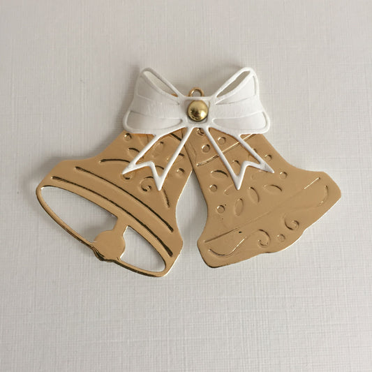 6 BELL Ivory & Gold Wedding/Christmas Die Cut Card Making Toppers