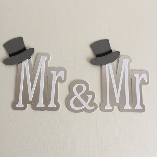 4 MR & MR TOP HAT Silver & White Gay Die Cut Card Making Toppers