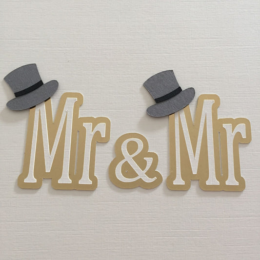4 MR & MR TOP HAT Gold & Ivory Gay Wedding Die Cut Card Making Toppers