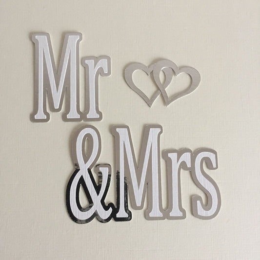 4 MR & MRS WITH HEARTS Silver & White Wedding Die Cut Card Toppers