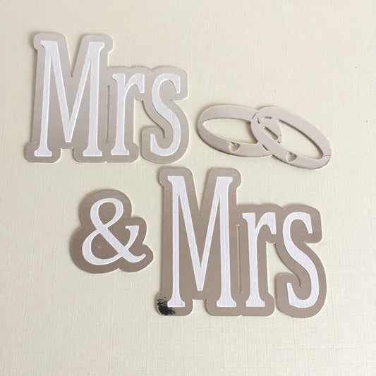 4 MRS & MRS WITH RINGS Silver & White Gay Wedding Card Making Die Cut Toppers