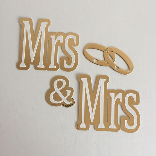 4 MRS & MRS WITH RINGS Gold & Ivory Gay Wedding Die Cut Card Making Toppers