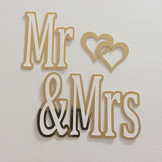 4 MR & MRS WITH HEARTS Gold & Ivory Wedding Die Cut Card Making Toppers